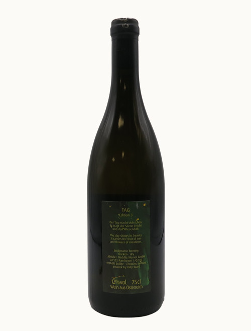 Le “Tag Edition 3” est un vin blanc mono-cépage 100 % Grüner Veltliner, issu de l’appellation I.G. Burgenland, embouteillé en 75 cl avec un degré de 12 % vol.. Il s’inscrit dans la philosophie “natural wine” de Meinklang, privilégiant une vinification avec levures indigènes et peu (ou pas) d’interventions.