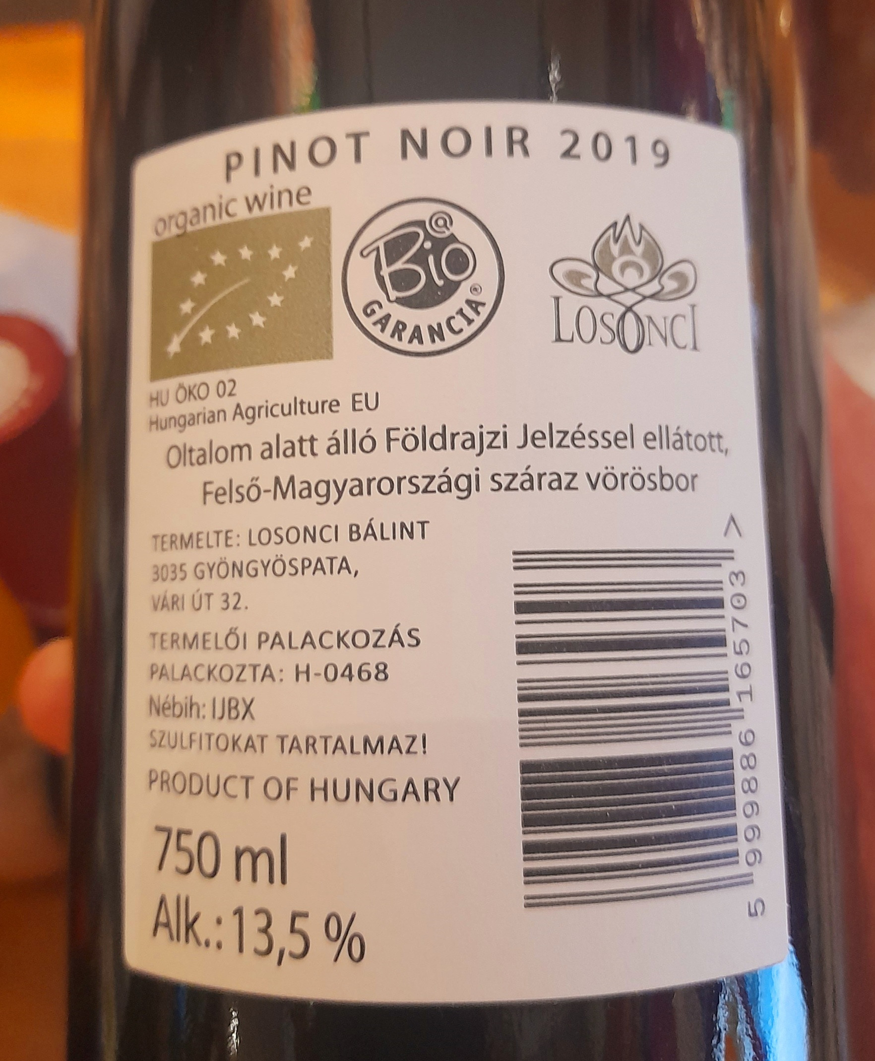 Losonci - Pinot Noir - 2019 - Rouge - 13.5% - 75CL - Hongrie - vin rouge